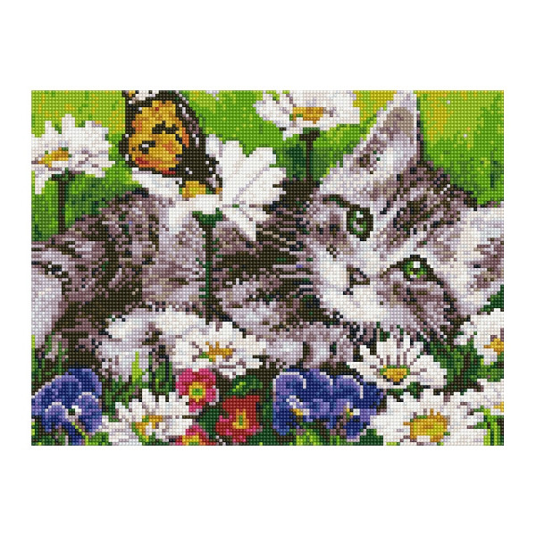 Алмазна мозаїка "Кошеня серед квітів" EJ1366, 40х30 см