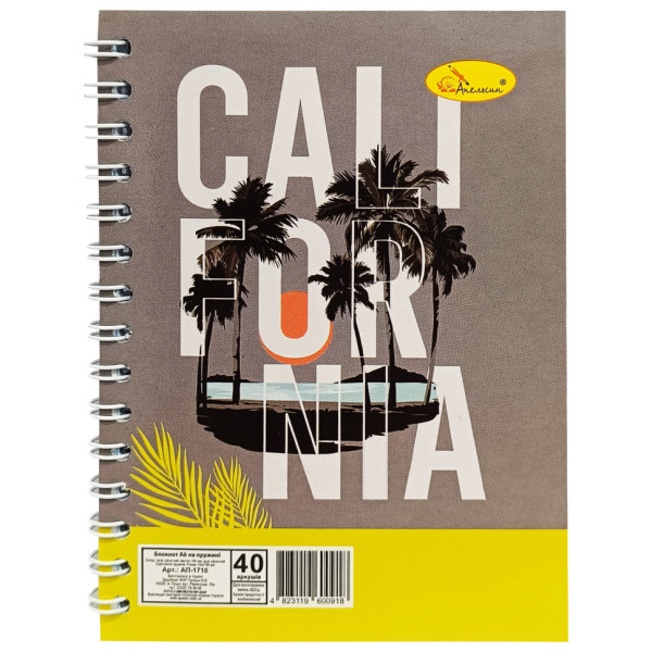 Блокнот А6 АП-1710, 40 аркушів, пружина збоку Вид 1 (АП-1710-1)
