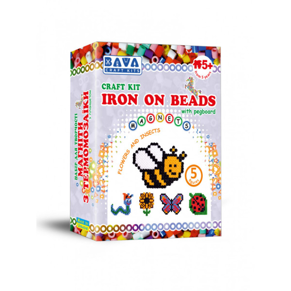 Дитячий набір для творчості. Магніти з термомозаїки "Квіти-комахи" TM-002, 5 фігур (TM-002)