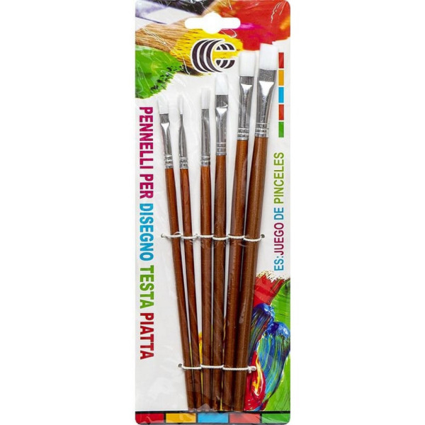 Набір пензликів плоских 1006 нейлоновий, білих 6 штук (1006-CIT)