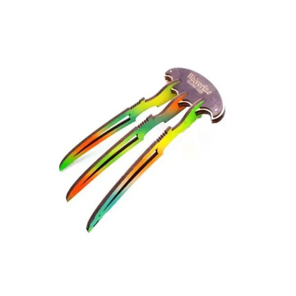 Дерев'яний виріб – сувенірний ніж у вигляді пазурів. Ніж зроблений дуже якісно, з високою деталізацією та яскравим забарвленням. Довжина пазурів: 17 см. Бренд: Сувенир-Декор Упаковка: Планшет Колір: Різнобарв'я Вага з упаковкою: 85 г Габарити в упаковці: 26 x 3 x 9 см Країна виробник: Україна Матеріал: Дерево Комплектація: Сувенірний ніж