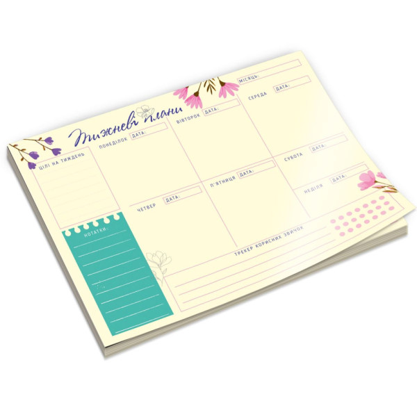 Зручний тижневий планер від Vladi Toys - це компактний та стильний помічник для організації навчання, роботи й особистих справ. Формат 20×14,3 см ідеально підходить для рюкзака, сумки або робочого столу, а україномовне наповнення робить планування максимально комфортним.