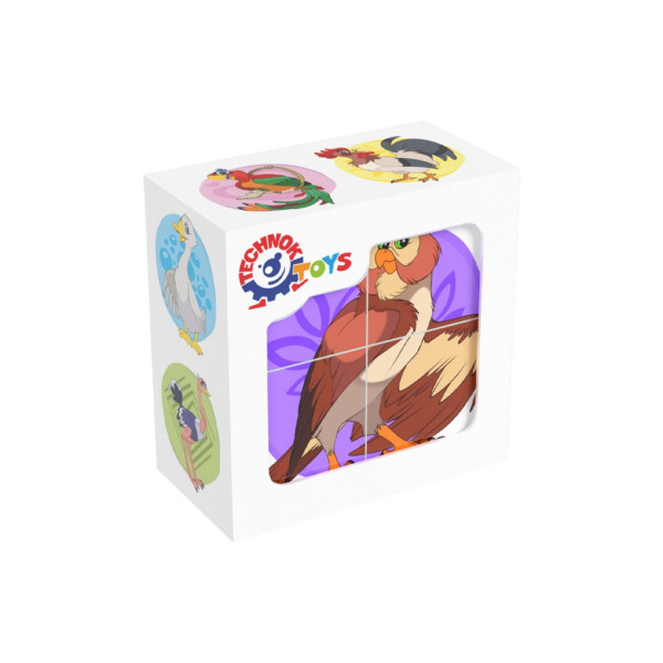 Набір з 4 кубиків, на кожній грані кубика фрагменти зображення птахів, які потрібно скласти в один малюнок. Розвиває логічне мислення, моторику пальців, фантазію. Розмір кожного кубика: 4х4х4 см. Розмір упаковки: 8х8х4 см.