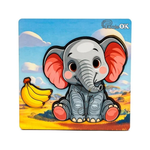 Деревянный пазл-вкладыш "Веселый слоненок" Puz-88752 А6, 4 элемента (Puz-88752)