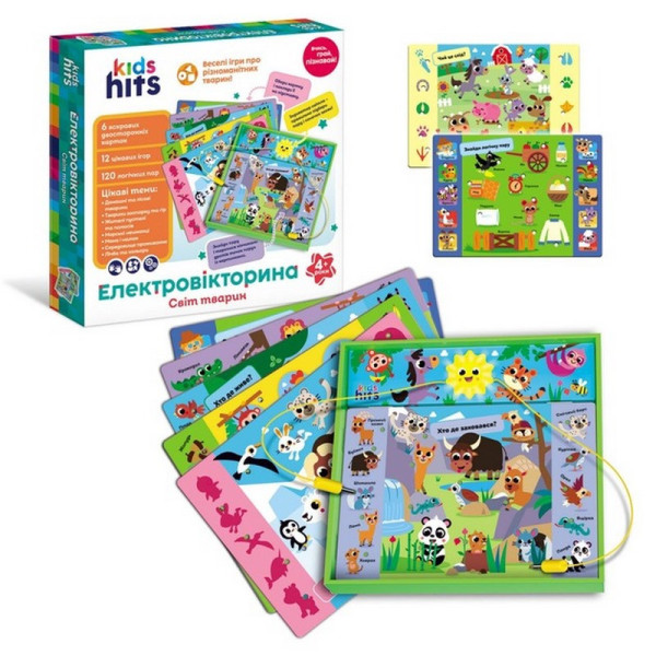 Электровикторина детская "Мир животных" KH55/003 в комплекте 6 карточек 12 заданий(KH55/003)