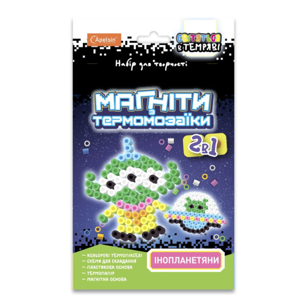 Набор для творчества термомозаики 2 в 1 НТ-17 светящиеся в темноте Инопланетяне(НТ-17-02)