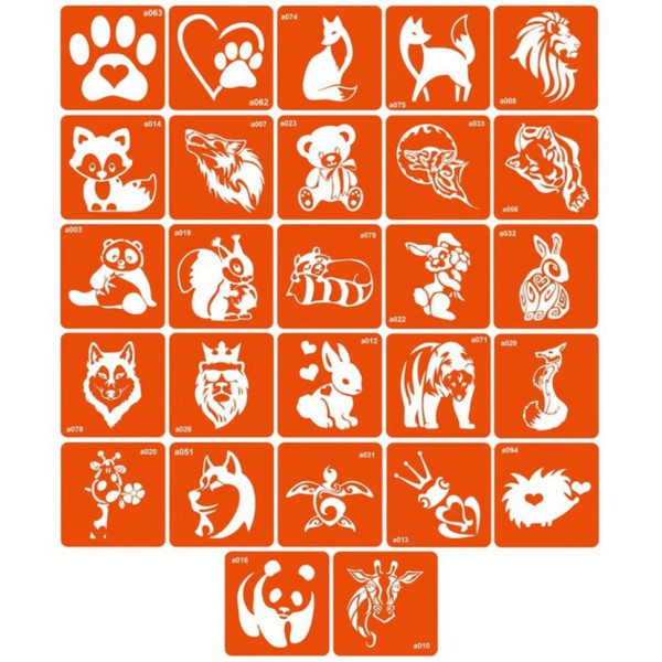 Набор трафаретов для био-тату «A - животные» a_simple_5x5_27_1(a_simple_5x5_27_1)
