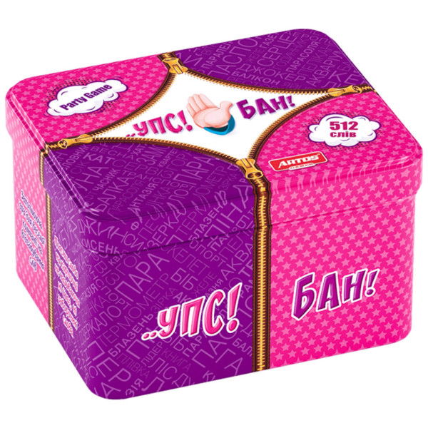 Оригінально оформлена, захоплююча настільна гра "Упс! Бан!" 1106 - ідеальний привід, щоб зібратися з друзями і дітьми, і провести час із задоволенням. Ігровий набір укомплектований красивою, металевою коробкою, в якій його зручно зберігати, перевозити і дарувати. Яскраве виконання, продумане наповнення і цікаві завдання - все в цій грі сподобається навіть самим вимогливим юним пустунам. Ключове завдання гри - необхідно на час пояснити слово, вказане на картці, не називаючи ні його, ні 5 заборонених слів, додатково зазначених на ній. Для роз'яснення одного слова надається одна хвилина на команду. Ваша дитина чекає по-справжньому захоплююча пригода в дружній компанії. Гра корисна для розвитку комунікативних навичок, тренування дрібної моторики, поліпшення навичок запам'ятовування. Цікава і барвиста розвиваюча гра відрізняється чудовою якістю кожної деталі, виготовленої з екологічно чистого матеріалу.
