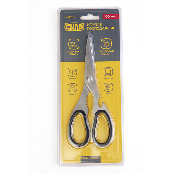 Ножницы господ. стальные ручки с резиновой вставкой. 19см СИЛА Арт.401056