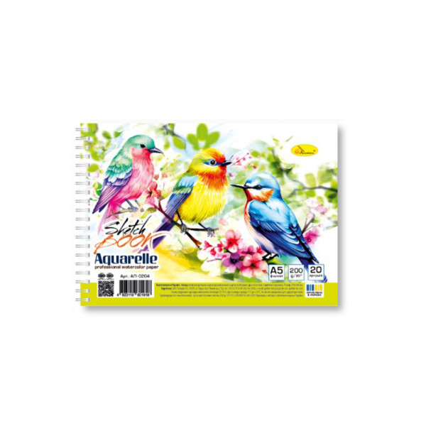 Скетчбук акварельний "Пташки" А5 АП-0204-3, 20 аркушів (АП-0204-3)