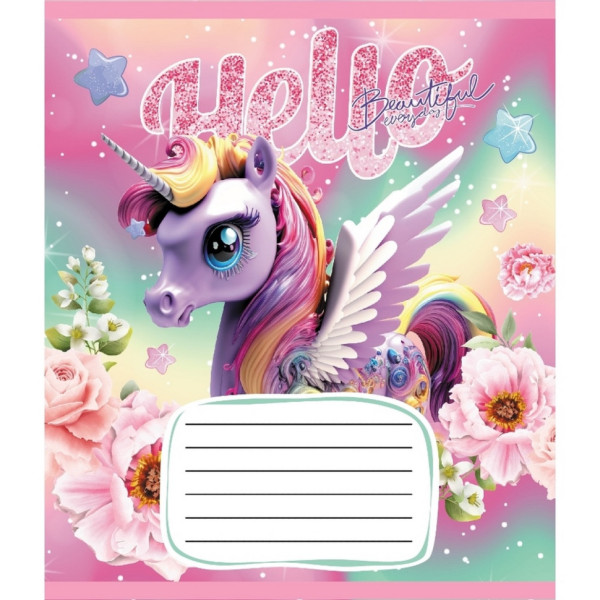 Зошит учнівський "Єдинороги" 012-510065C-3 в косу лінію, 12 аркушів (012-510065C-3)